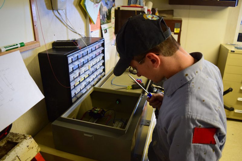 - 4/C McDaniel works on an electrical project during maintenance