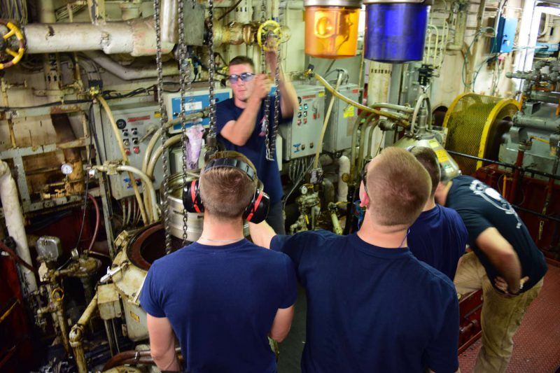 - Delta Company midshipmen help re-assemble an HFO purifier