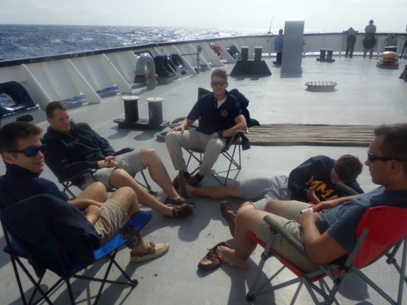 - 2/C relax on the fantail after training is completed and the skies have cleared