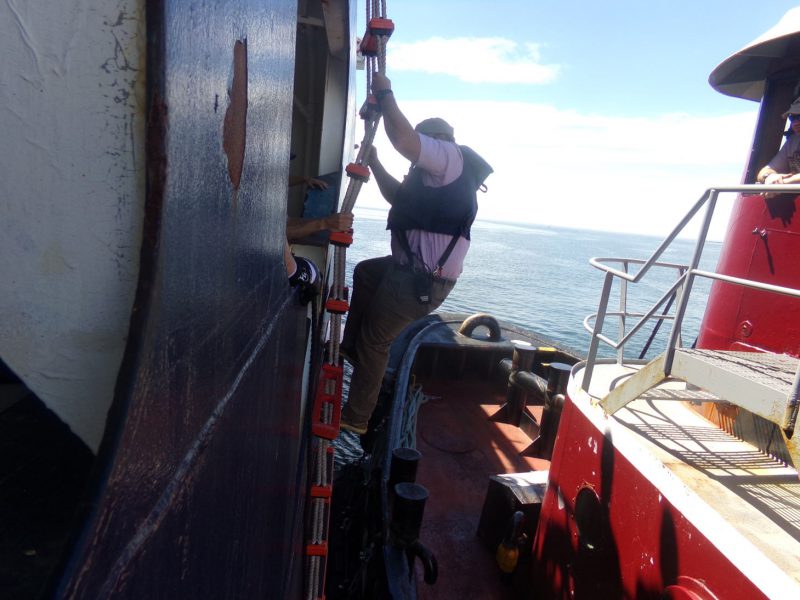 - The deck maintenance crew disassembles the gangway once it’s been brought on deck