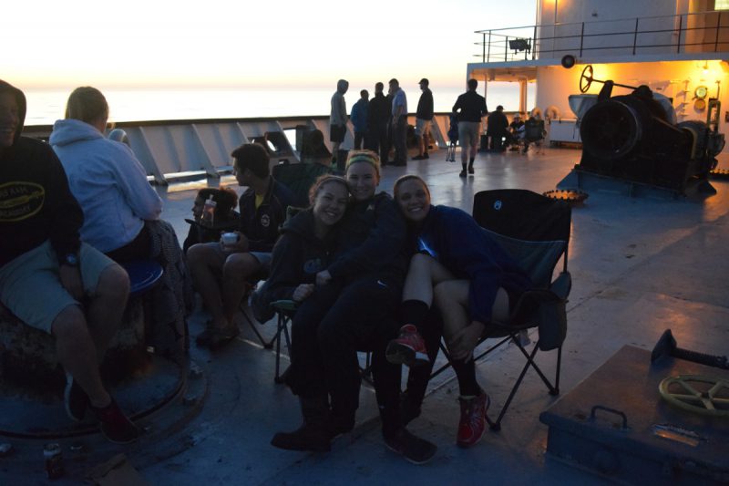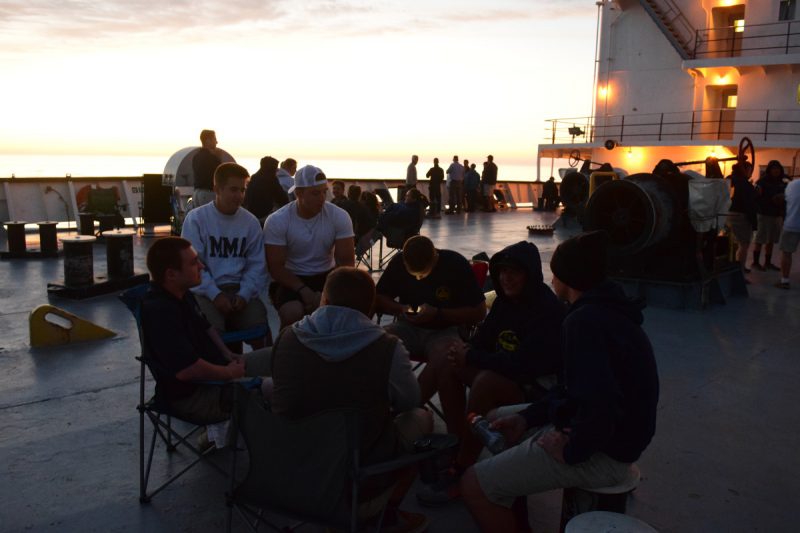 - Students, crew, and training officers alike enjoy a beautiful evening at sea.