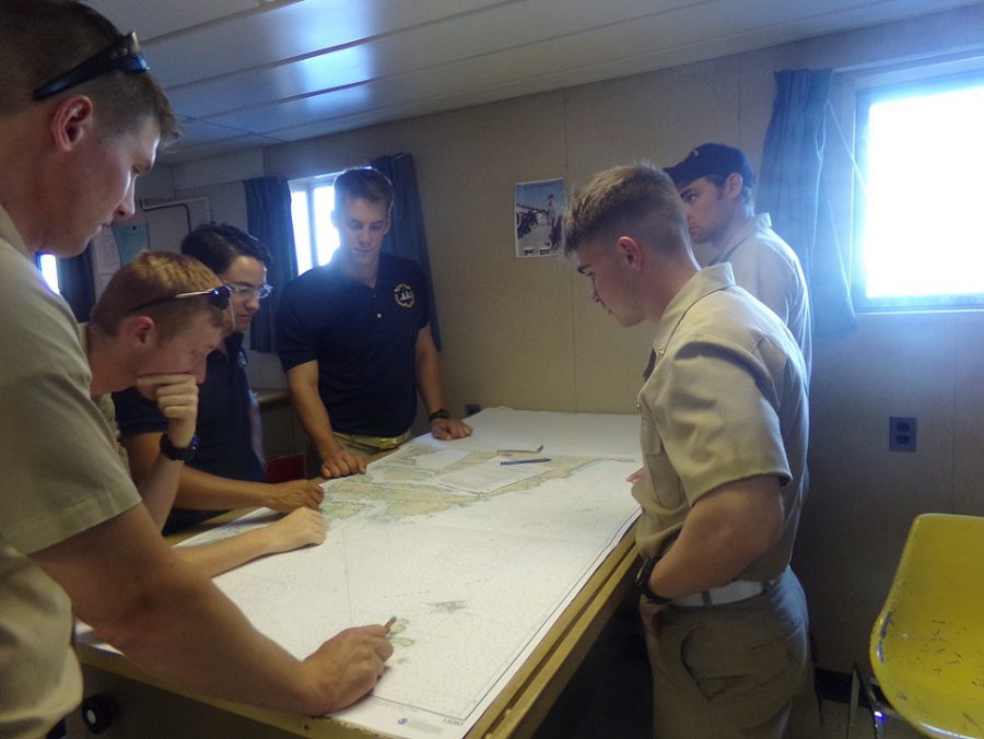 - 2/C Deck students creating the final plans for getting into Portsmouth, NH.