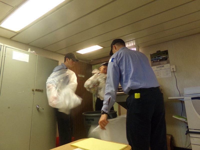 - Alpha Company takes out the garbage in the ship’s office; 4/C Rice, Olsen, and Libby