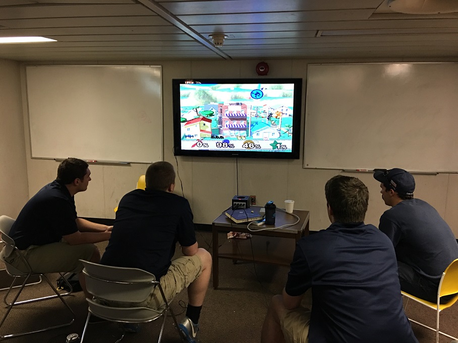 Day two of 2/C Flashlights as Charlie Company eagerly congregated around the 3-Deck Classroom, early, at 0745. Delta, on the other hand, didn’t waste any time enthusiastically cleaning the decks and engine room as they successfully completed their Training “8” test evolution. Wax and stripper filled the air today as all prep for Room and Personnel Inspections coming up in three days. Upon completion of a long day’s work; a handful of Cadets breathed a sigh of relief as they took part in several eventful games of “Super Mario Smash Brothers”. As it turns out; you’re never too old to act like a kid.