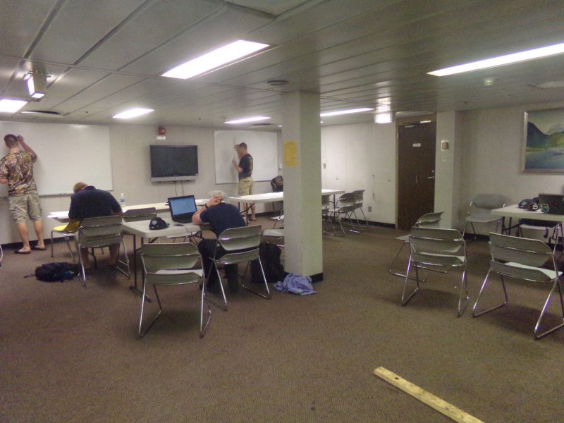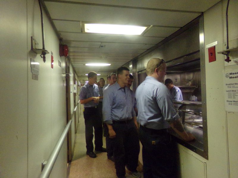 Delta Company breathed a sigh of relief this afternoon as they became the first company to complete the second round of training exams. Juniors finished up with their flashlight exams, while freshmen took their very first drawing exam. This evening also marked the second Iron Mariner competition, with Alpha Company taking home the honors, participants gaining the privilege of post-muster breakfast for the next week. The big news on the ship however, is the sighting of a raft full of Cuban refugees headed for Florida last night.