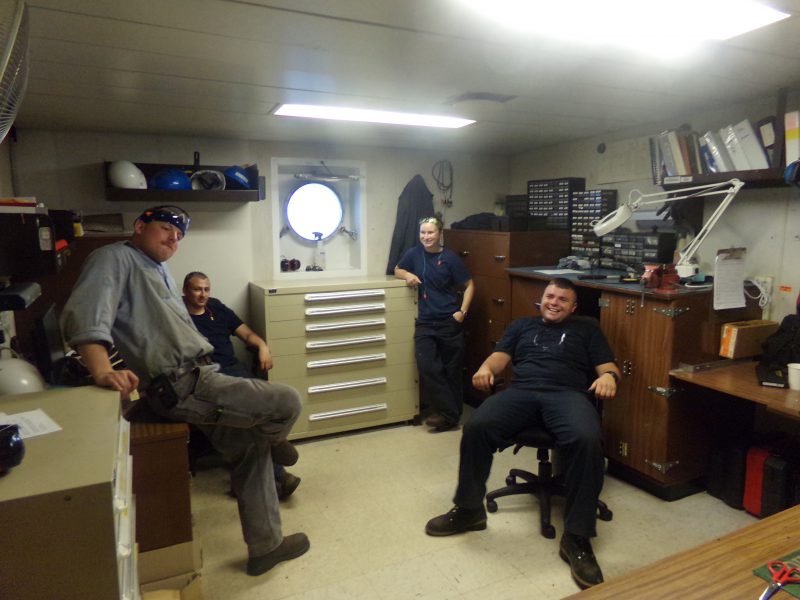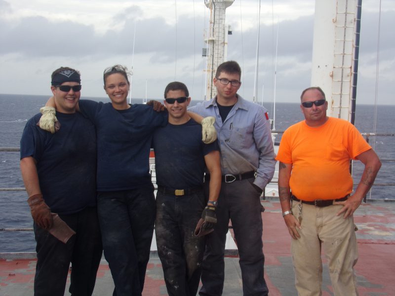 - From left to right; 4/C Webster, 4/C Williams, 2/C Randazzo, and 4/C Publicover enjoying the moment while on Deck Maintenance.