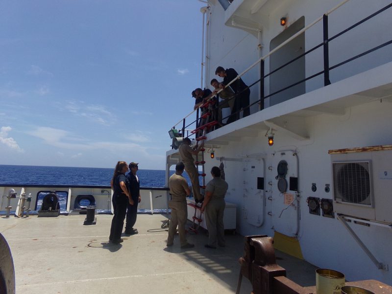 Today marked the first day of the Iron Mariner Challenge, an inter-company PT challenge that both boosts morale and keeps midshipmen in top physical condition. Students gathered on the 03 reception deck to participate and watch, despite the heat and humidity. In addition, Charlie Company completed their first training exam, which leaves Alpha as the only company not to have taken it yet. We’re halfway to Galveston, and students are clearly relieved to have only a short interval between ports.