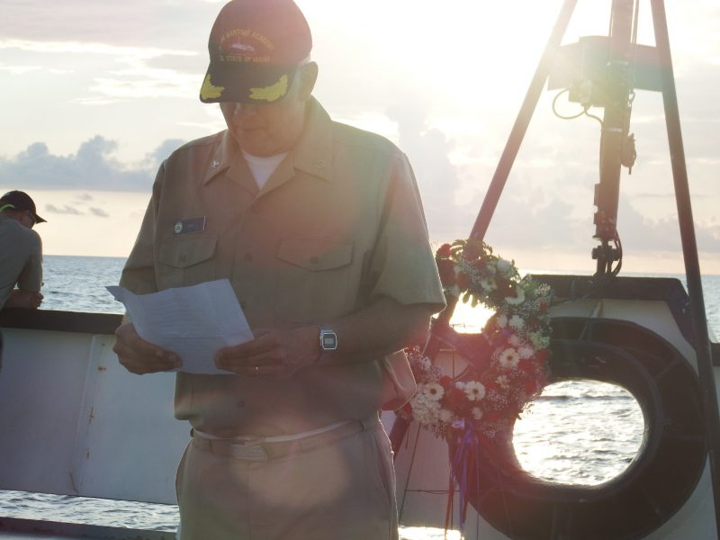 - Captain Eadie reads a poem to honor Captain Paul Spear, a recently passed MMA Alumnus.