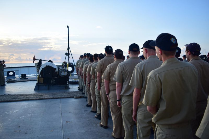 - Midshipmen formed up on the fantail this morning to honor Captain Spear.