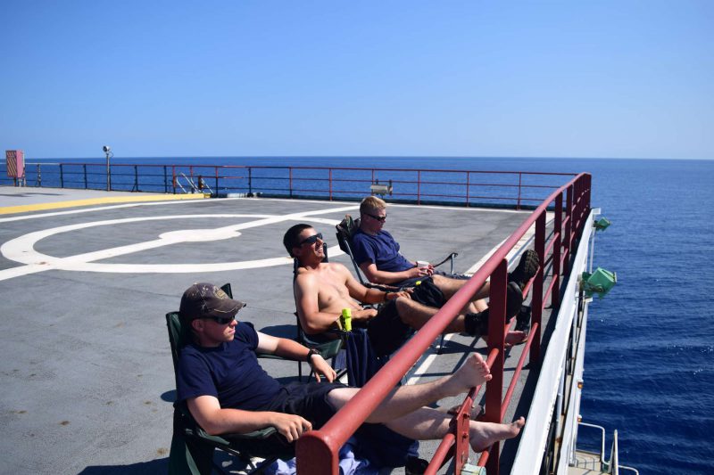 - 4/C Cook, Salvador, and Smith relax between watches.