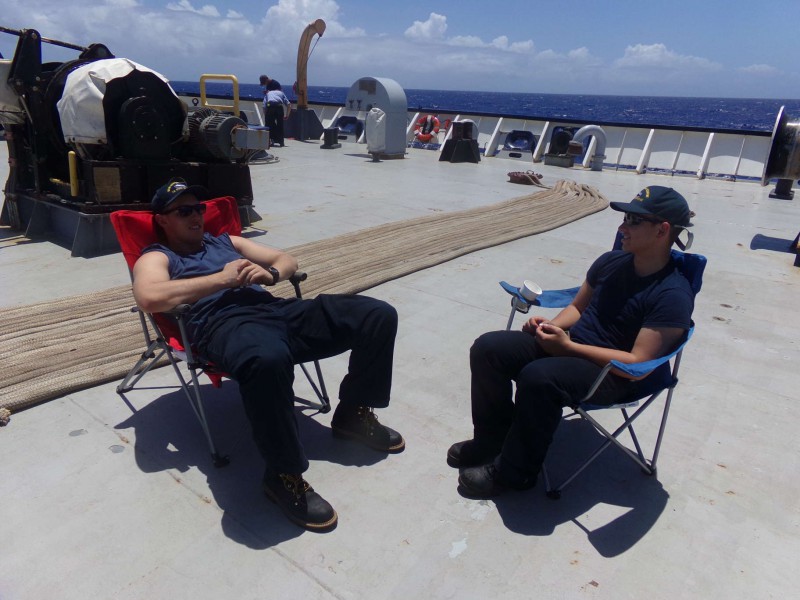 - 4/C Butts and Davis relaxing on the fantail