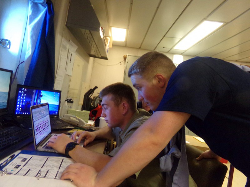 - 4/C Goewey and Miller working hard in the ship’s office