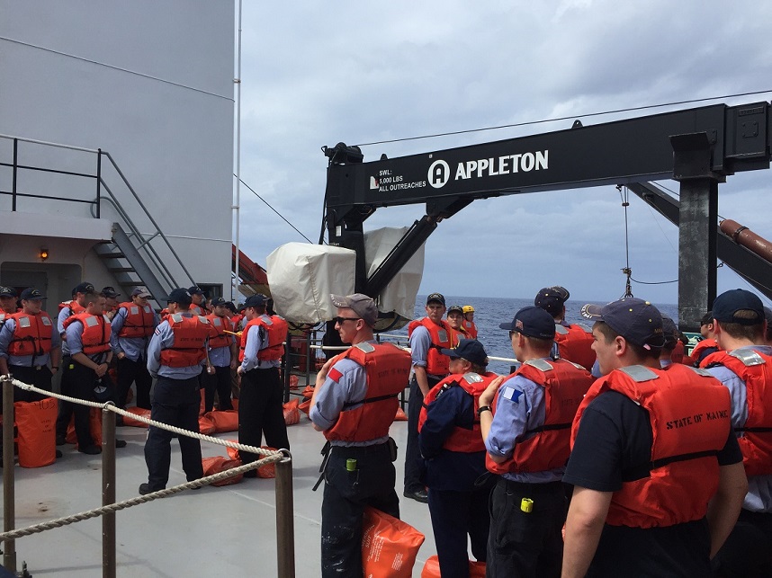 Our third day out of Charleston; students are getting accustomed to the heat and humidity. Islands could be sighted on the horizon today as we passed by the Bahamas on our roundabout route to Tampa. “Fishing is still slow” 2/C Seale reports. Emergency Drills were conducted today including, X-ray (lockdown drill), Fire and Emergency, and Abandon ship. These drills are vital for the safety of all on the Training Ship. Alpha Company is finishing up a stint on utility and prepares to begin three days of maintenance, while Bravo ends their maintenance stint and begins training. Charlie has been on training, and will take up the watch at midnight tonight, leaving Delta Company on utility for the next three days.
