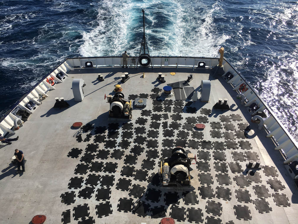 Temperatures are warming as the ship creeps south towards the Azores. While some students miss the cool, Belgian air, others welcome the change and can be found relaxing on the fantail or tanning on Steel Beach. Bravo Company is glad to have the first round of training exams of second half over with, although nobody is looking forward to flashlights. Clocks fall back another hour tonight, much to the relief of everyone on board. After losing an hour of sleep every other night on the trip over, it’s quite a luxury to gain an hour on the way home.