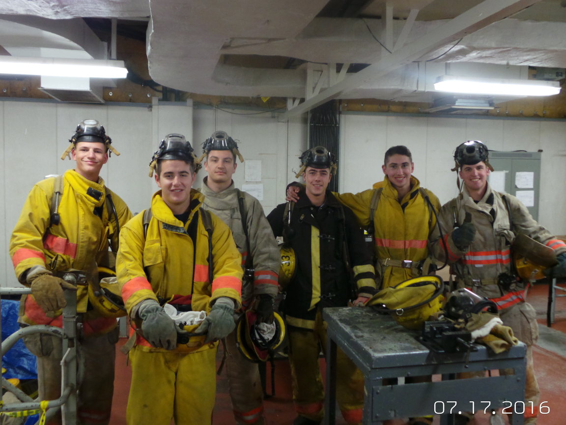 - 4/C Leclerc, Brown, Newbury, Richards, Amalfitano, and Forte pose in turnout gear before the drill