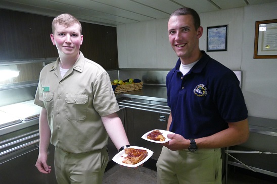 - 2/C Holmes and Daigle enjoying their Fried Fresh Toast.