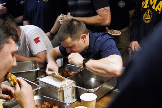 Tonight, Sodexo held a wing night for students to enjoy. Similar to the first half of cruise, there was a wing-eating competition. This time, the competition was won by Bravo Company. The 2/C have 4 minutes to eat as many wings as possible and the 4/C have five minutes. Everyone enjoyed a little friendly sport after a long passage back to the U.S. We pull into Boston on the evening of the 27th for a quick stop before heading home to Castine.