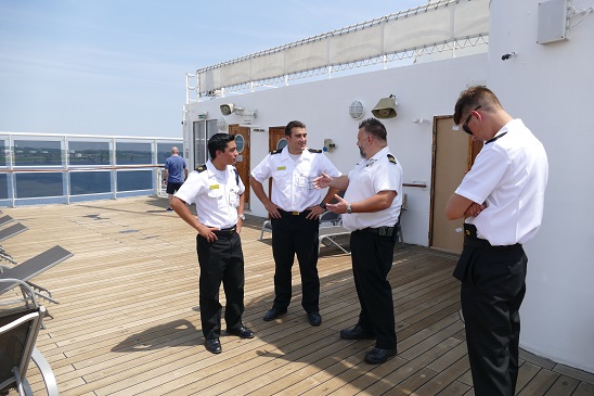 - From the bridge wing, of CSO Pilbey talking to 4/C Adam Casillas as the others mill about the bridge. Photo Credit: D Silver