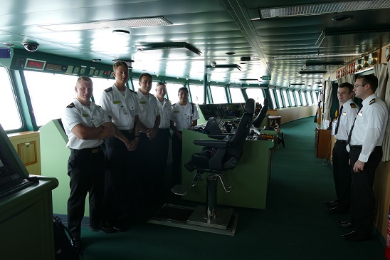 - Everyone looking around the bridge on the Queen Mary 2. 4/C H. Reed, N. Pelletier. Photo Credit: D Silver