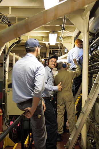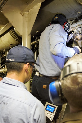 - Delta 2/C Jordan and 2/C Samson down in the engine room. Photo Credit: Z Johnson