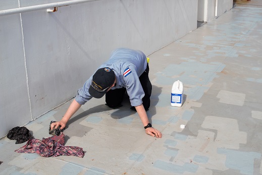 - Charlie 4/C L Peacock on Deck Maintence getting some painting done. Photo Credit: Z. Johnson