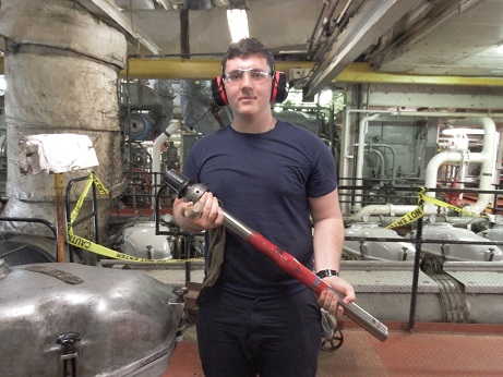 4/C Jarod Hansen holding the broken head bolt out of Cylinder Number 4, which came loose the morning of May 27th.