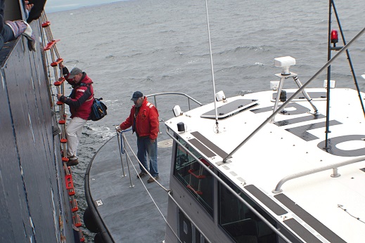 - The Pilot coming off the training ship before leaving Penobscot Bay.