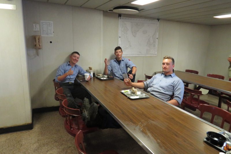 It was another busy day on the TSSOM. Charlie was on deck maintenance, chipping and painting the lifeboat davit. Alpha had watch and worked on finishing sign-offs before their final training day. Students were able to see lots of sea turtles swimming alongside the ship throughout the day. With only 12 days left of cruise, everyone is looking forward to the big 4th of July event aboard the ship tomorrow!