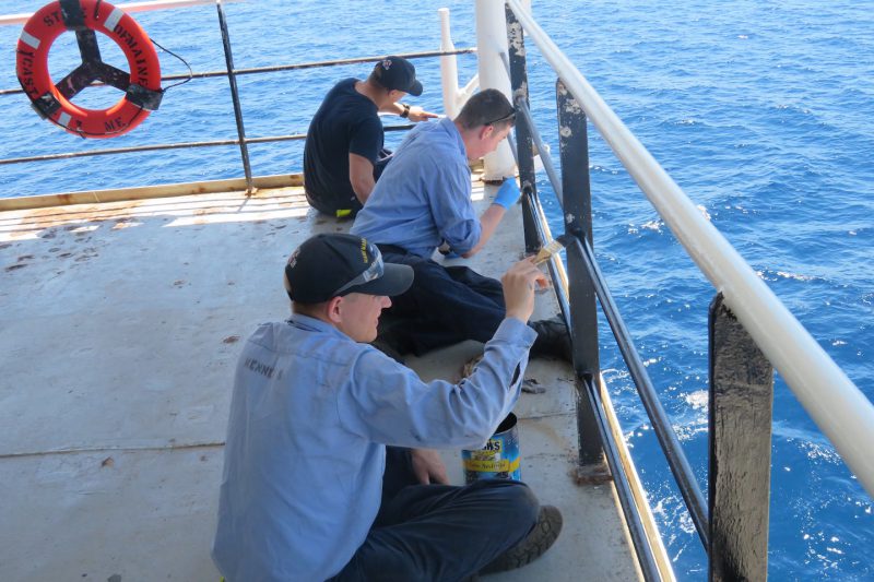 Last night we crossed through the straits of Gibraltar and into the Mediterranean Sea! After advancing our clocks an hour, we are currently 6 hours ahead of those back home in the Eastern Time Zone. Today was another day filled with hard work. Delta Company was on maintenance painting various areas of the ship. Bravo Company did the daily cleaning on utility, keeping the interior of the ship in pristine condition. Alpha company had their third training day in a row. During training our NOAA representative on board, Rusty Albaral, gave a presentation–an overview of meteorology. Engine training worked on a black pipe project as well as an electrical project. Charlie Company stood watch making sure the ship is running as safe and as smooth as possible. Only five days until we reach Civitavecchi, Italy!