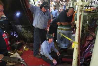 - 2/C Littlefield, 2/C Owen, and 4/C Capasso are working hard to fix a MSW pump
