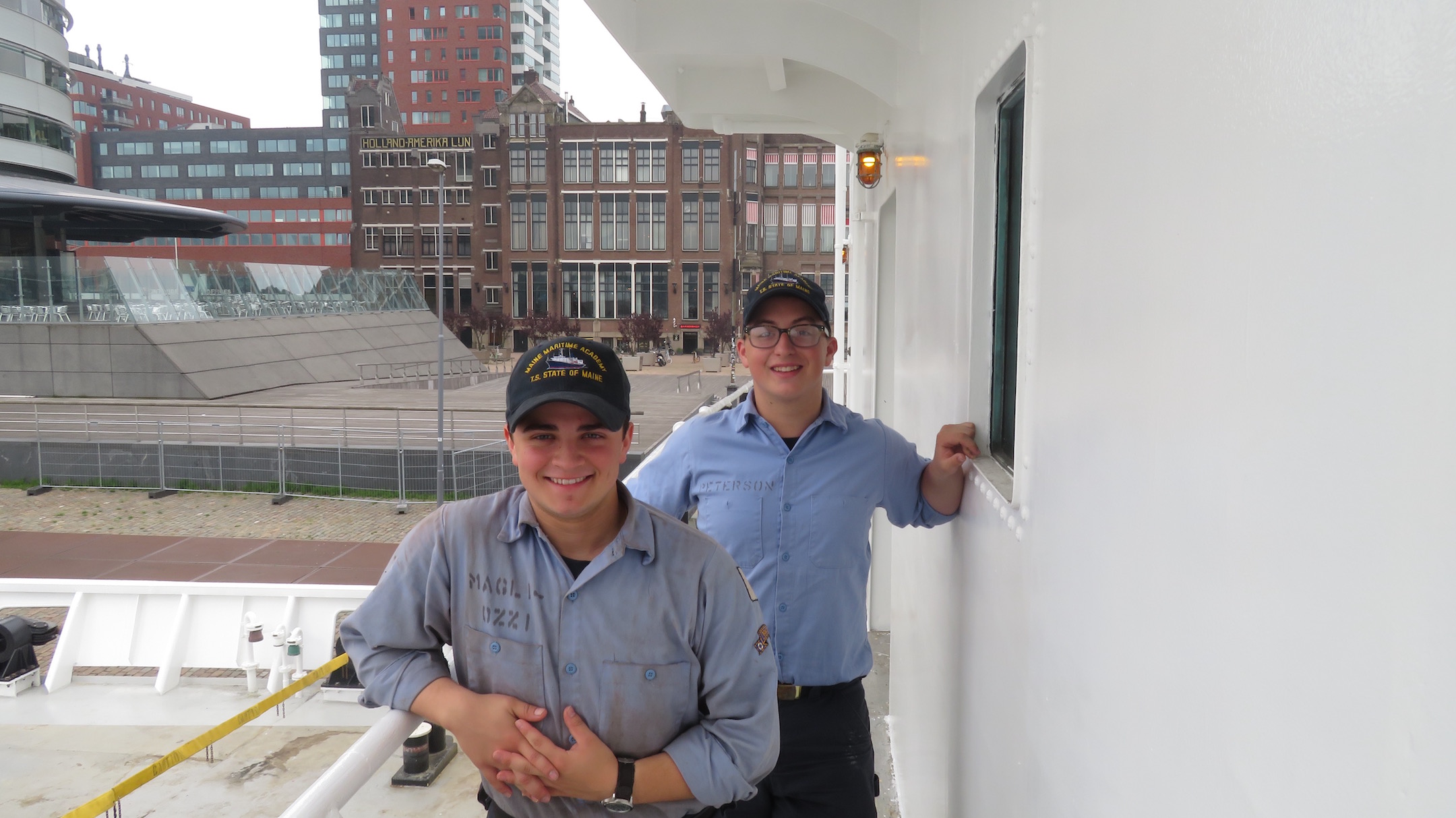 - 4/C Magliozzi and 4/C Peterson hard at work with Rotterdam in the background