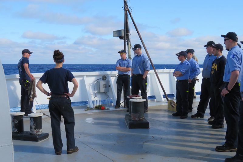 - 2/C Olson teaches Alpha 4/C about messenger lines and their monkey fist