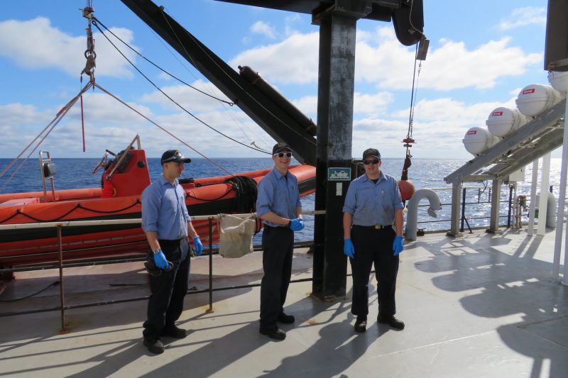 we are navigating. It is much like a drive from California to Maine when it is required to advance your clocks for Mountain, Central, and Eastern time zones. This morning we woke to a beautiful day with temperatures in the sixties and sunny. The seas are pretty flat and it was nice to leave yesterday’s cool and drizzly conditions. We are truly experiencing the pleasantry of fair winds and following seas. As of noon today, we were about 500 miles into the Atlantic Ocean and steadying into an underway routine tackling the many tasks necessary to keep TSSOM spinning like a top and looking sharp.
