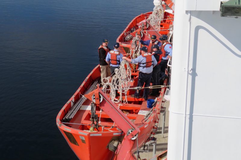 - Students learning aboard life boats