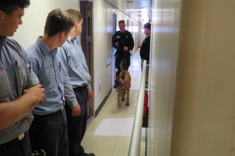 - Students watching as K9’s search rooms