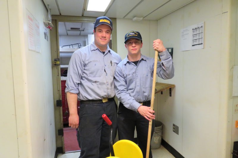 - 4/C Carroll and 2/C Greenberg cleaning the ship