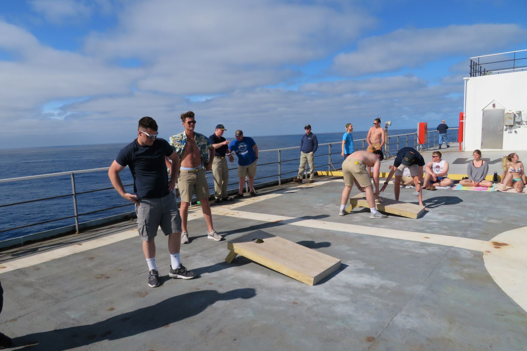 Today was another busy day aboard the ship! After a productive morning, we held TSSOM’s annual corn hole tournament in the late afternoon and sailed past the Azores in the early evening. It was a beautiful night and we all really enjoyed the first sight of land in over a week! Many were were able to make phone calls and catch up on news from home as we steamed through the islands. Excitement is building for our stay in Vigo, Spain, where we will be in port from May 21-24.