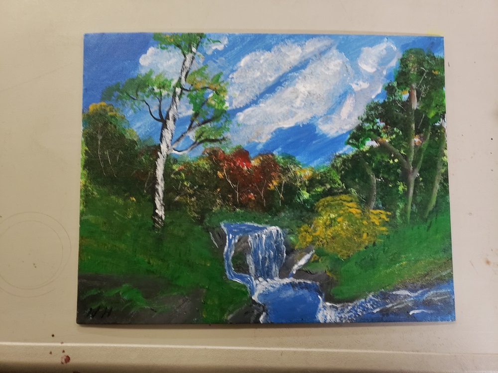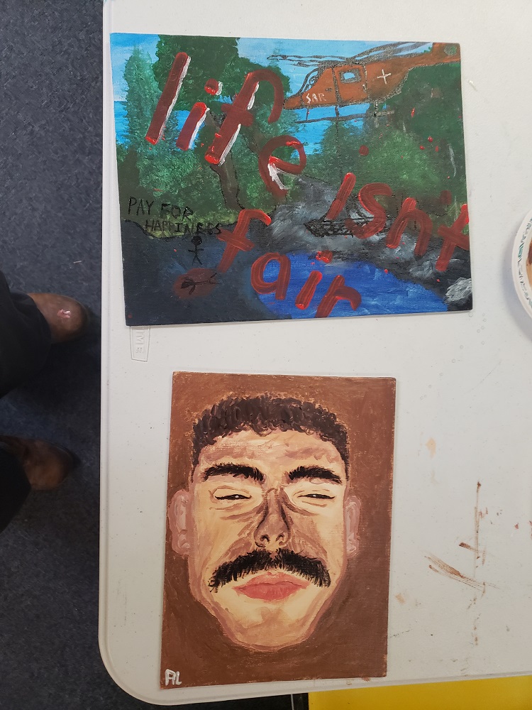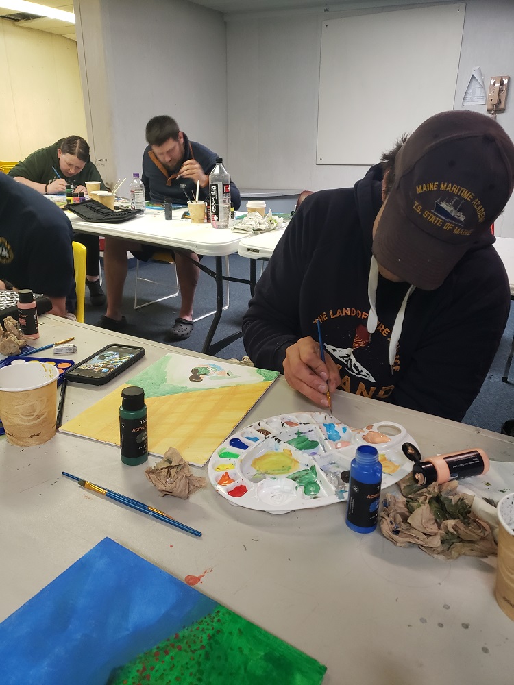 We had our second paint night tonight! Crew and students joined together to watch a Bob Ross special and listen to music while making various interesting pieces. Some followed along with the video, others let their inner tortured artist come out for a couple hours.