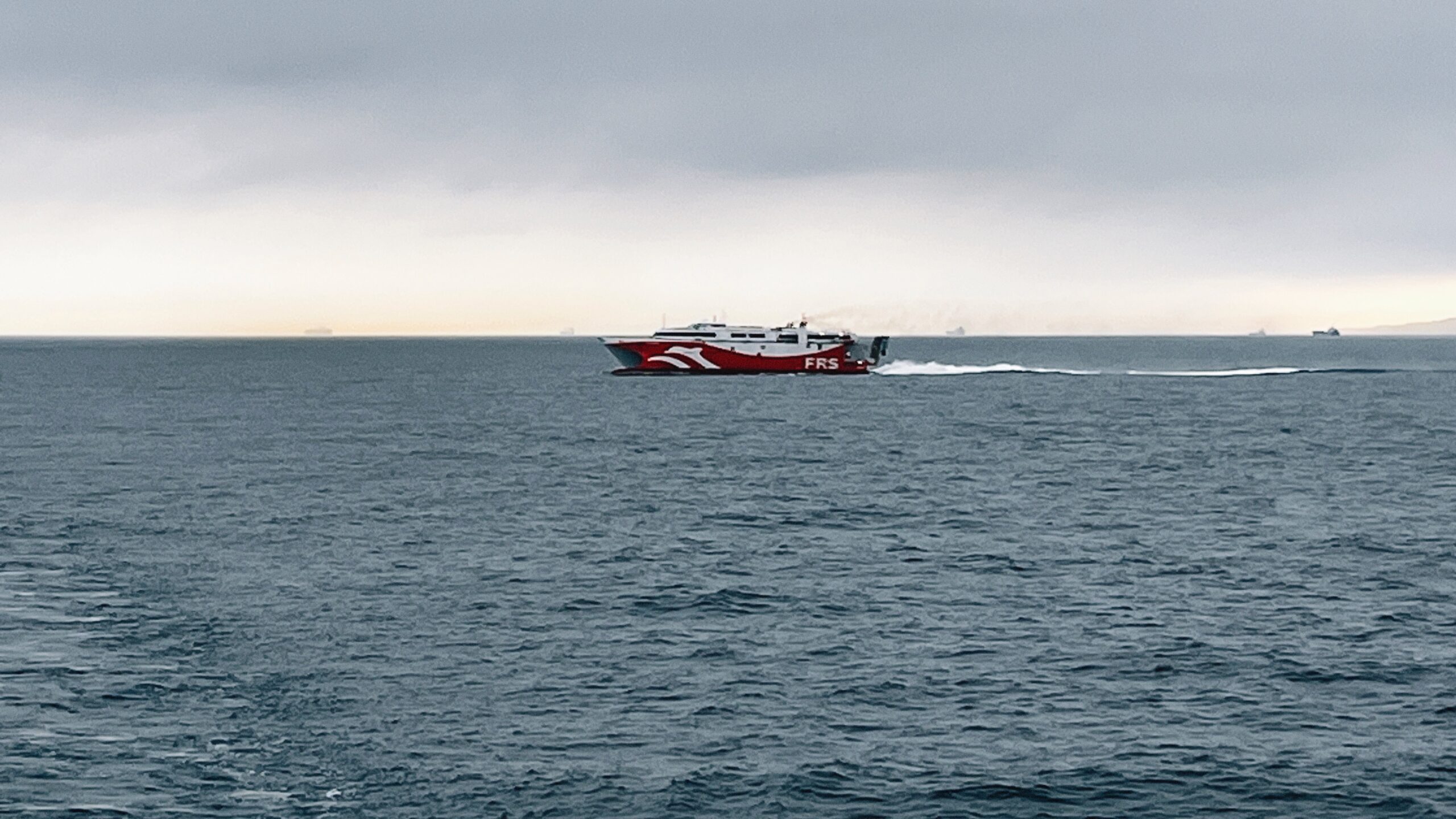 - A high speed ferry crossing our stern through the Straights.