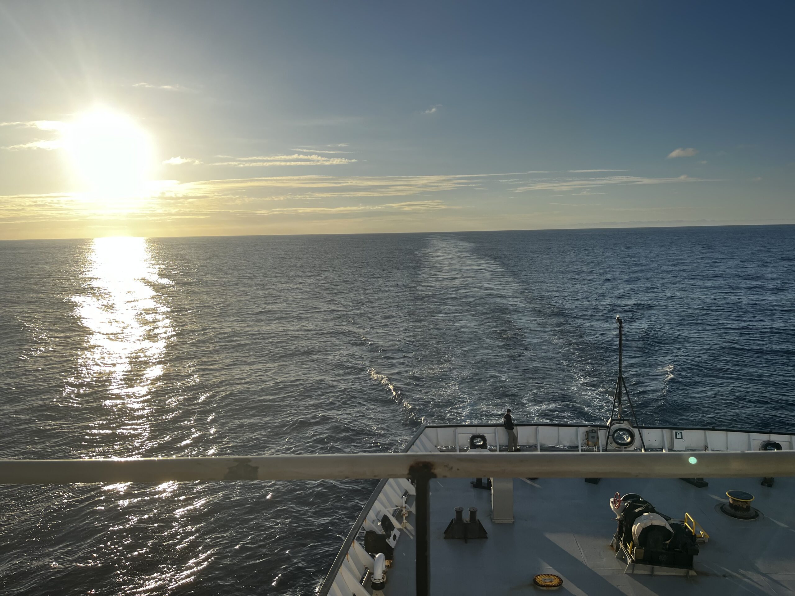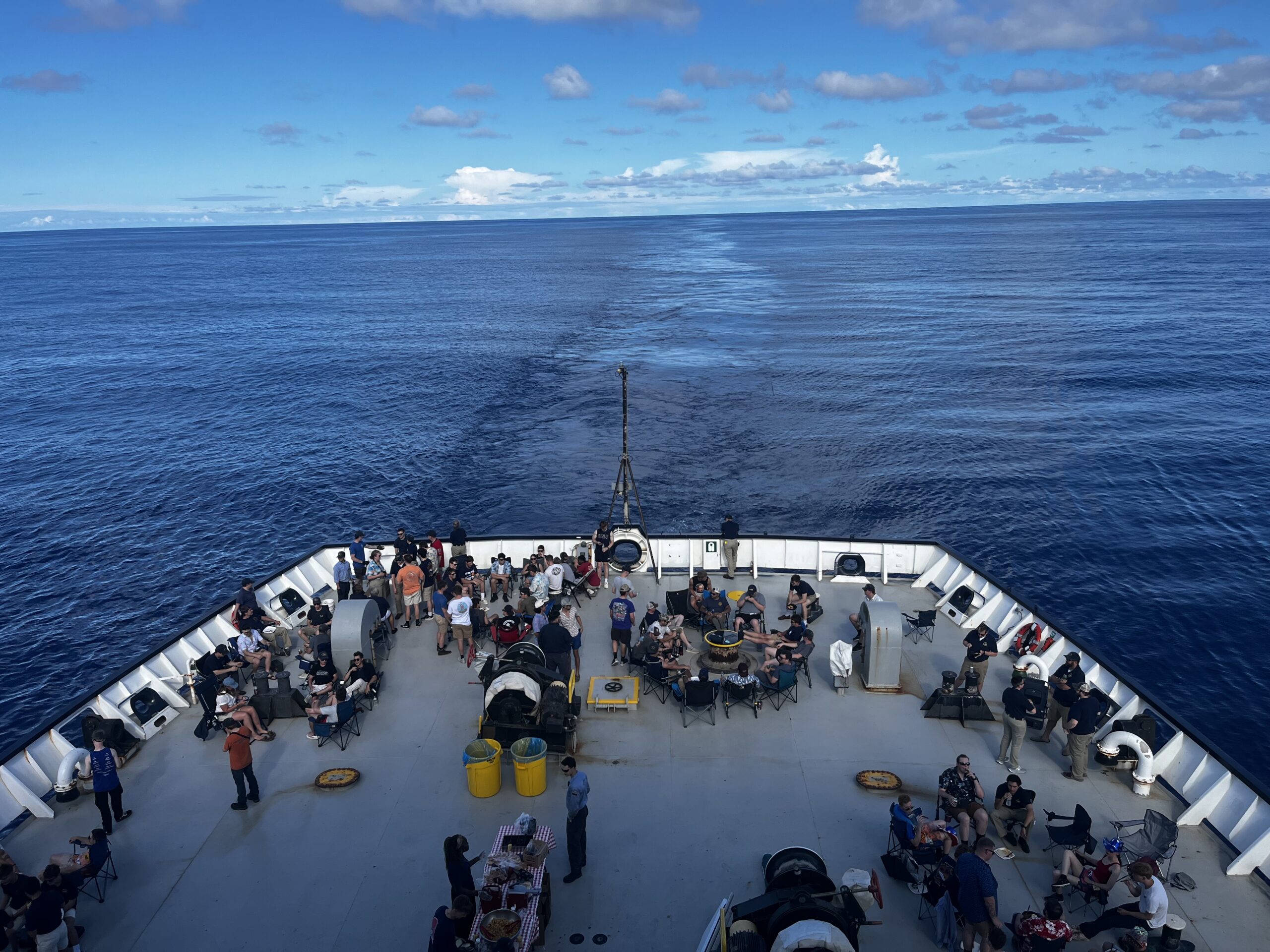 Once our abbreviated work day was complete, students took advantage of their free afternoon to practice for the Inaugural TSSOM Fourth of July Cornhole Tournament, take a much-needed nap or otherwise prepare for the festivities of the evening. When these festivities were upon us, cadets, faculty and crew alike flooded to the fantail to enjoy some mid-Atlantic R&R. The events of the day consisted of a highly-competitive cornhole tournament, a barbeque, a sunset game of hacky sack and an opportunity to socialize with friends. While the food on this cruise has been great, the steward’s department certainly outdid themselves in preparing for this celebration. The hotdogs, hamburgers, and potato salad were no substitute for mom’s homemade cooking, but they did offer us a taste of what our counterparts at home were enjoying, as bittersweet as that may be. As could be predicted, morale on the TSSOM is doing great.
