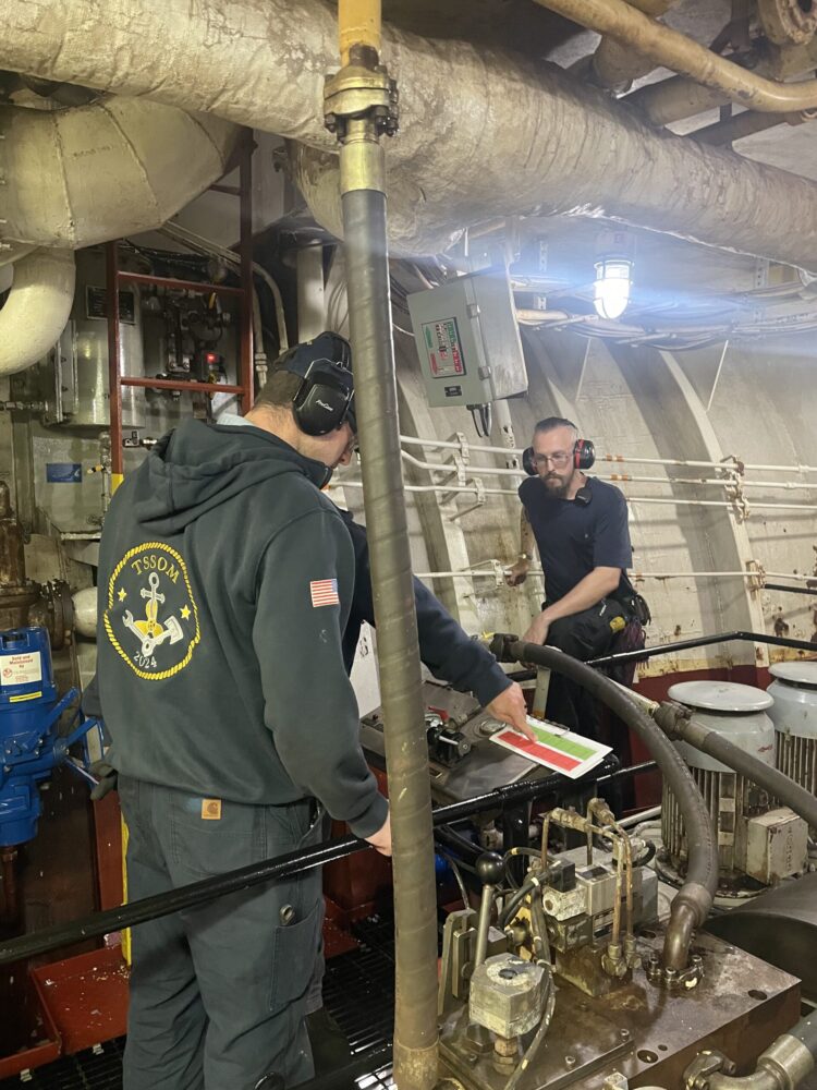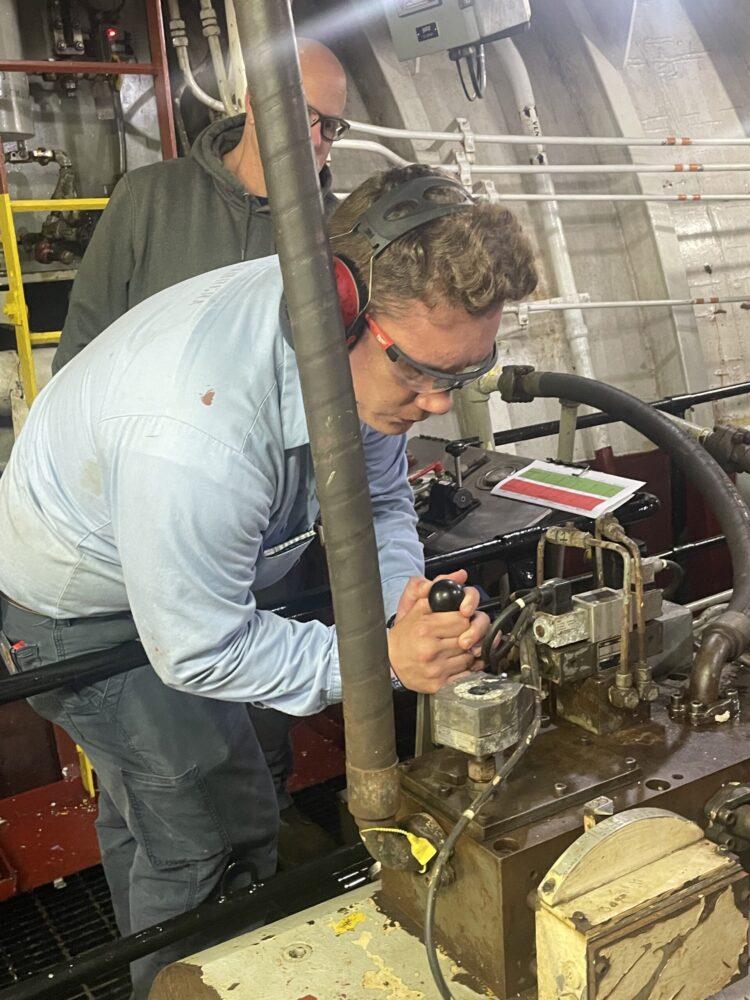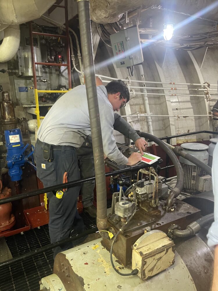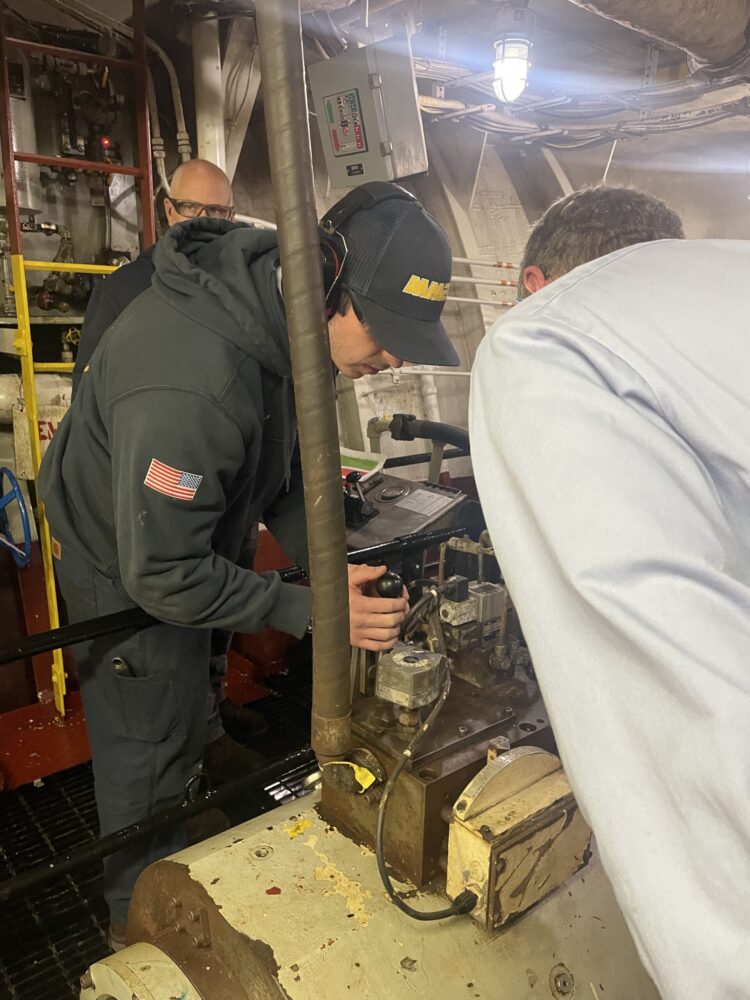 Chief Engineer Aaron Coy, 2nd Engineer Will Silver and Watch Officer Ryan Armstrong helped facilitate operation by preparing the system for student use 4 afternoons in a row. The willingness, dedication and positive attitude of these crew members is what made this happen. Every student thanked them for the opportunity. The students and faculty are lucky to have such support from the ship’s crew.
