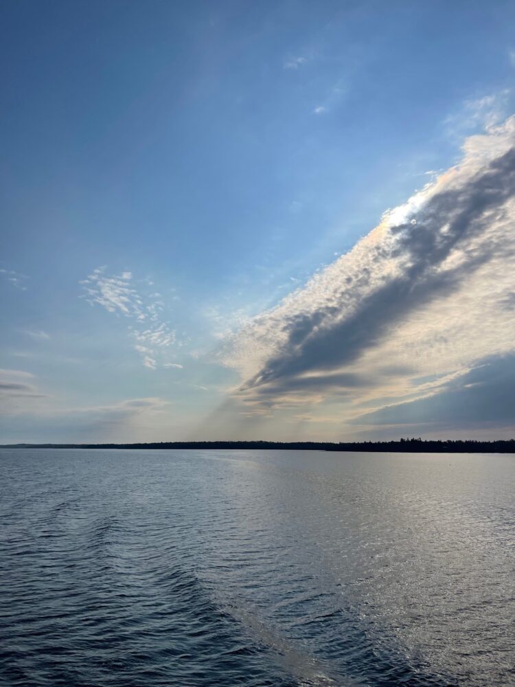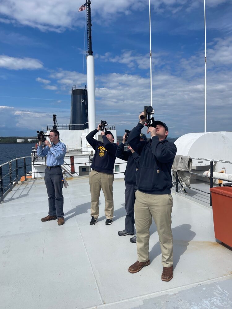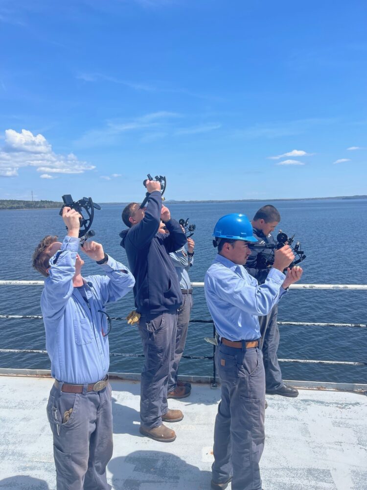 Like yesterday with permission of the Coast Guard, the TSSOM was allowed to raise anchor and sail within Penobscot Bay. This allowed the upperclassmen time at the helm as they made laps around the island of Islesboro under the pilotage of the ship’s Chief Mate. Unlike the day before, today we sailed out to a distance far enough from the shore to dispose of ground-up food waste overboard, which allowed some students to experience SRC duty.