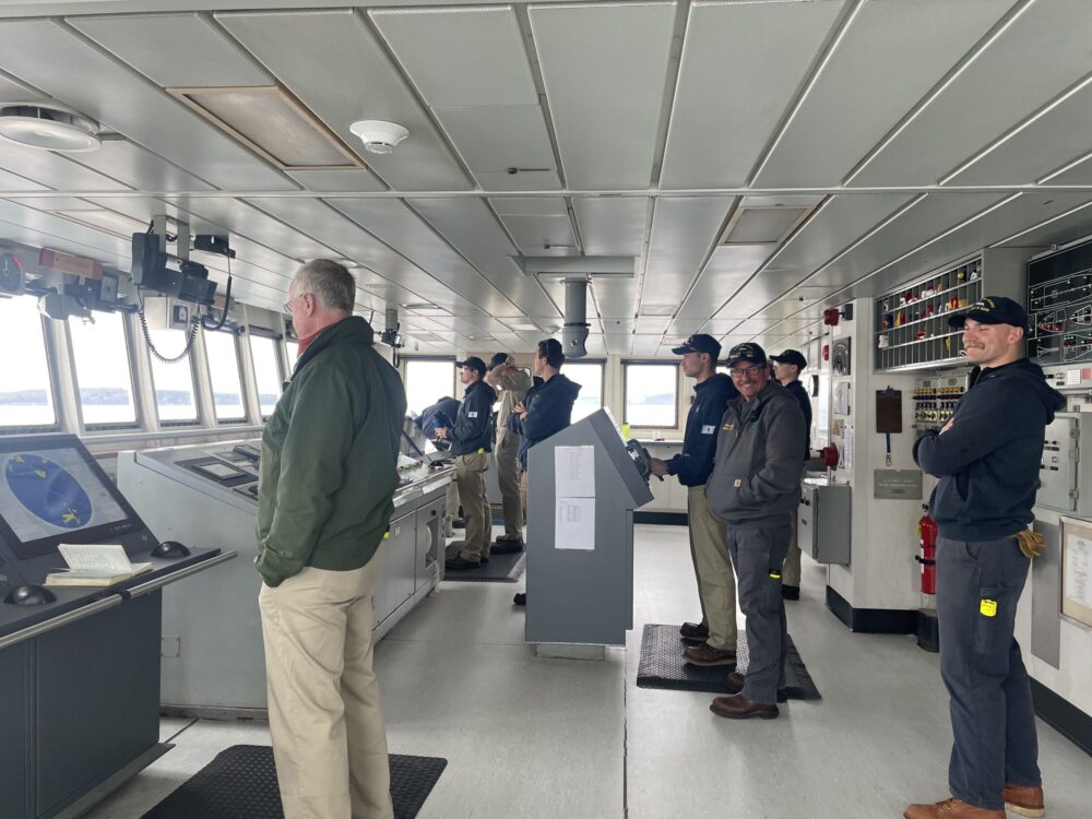 We are underway!* At around 0950 this morning we weighed anchor and set off to do some laps around the Penobscot Bay. It’s a refreshing sight to look out on the horizon and see the land go by after a week at anchor. With lifeboat parts another week away, and our stop at St. Thomas looking less than likely, this was just what the midshipmen needed to stay excited about cruise. With no time to spare either; today was to be our first stop in Port Everglades, Florida, and the chill winds and overcast sky won’t seem to let us forget it.