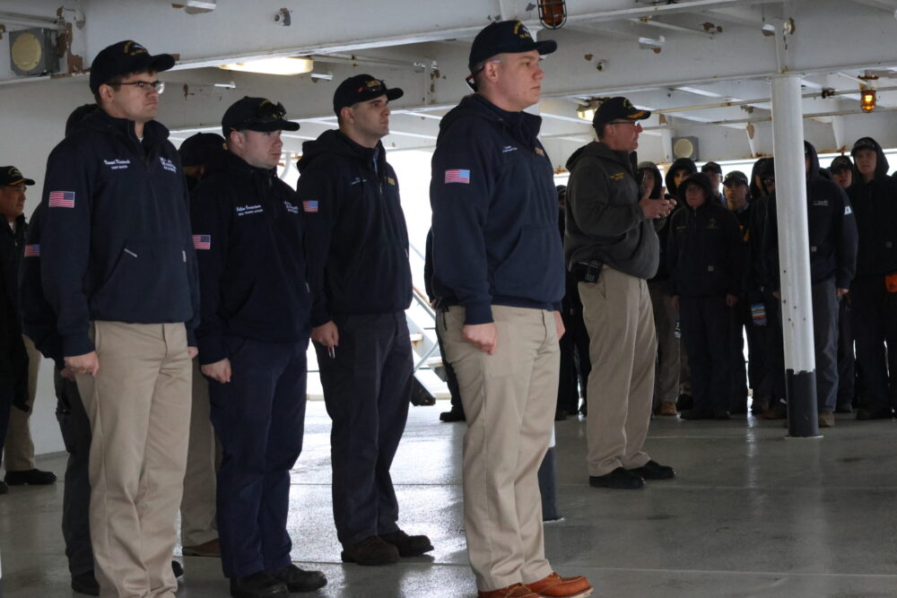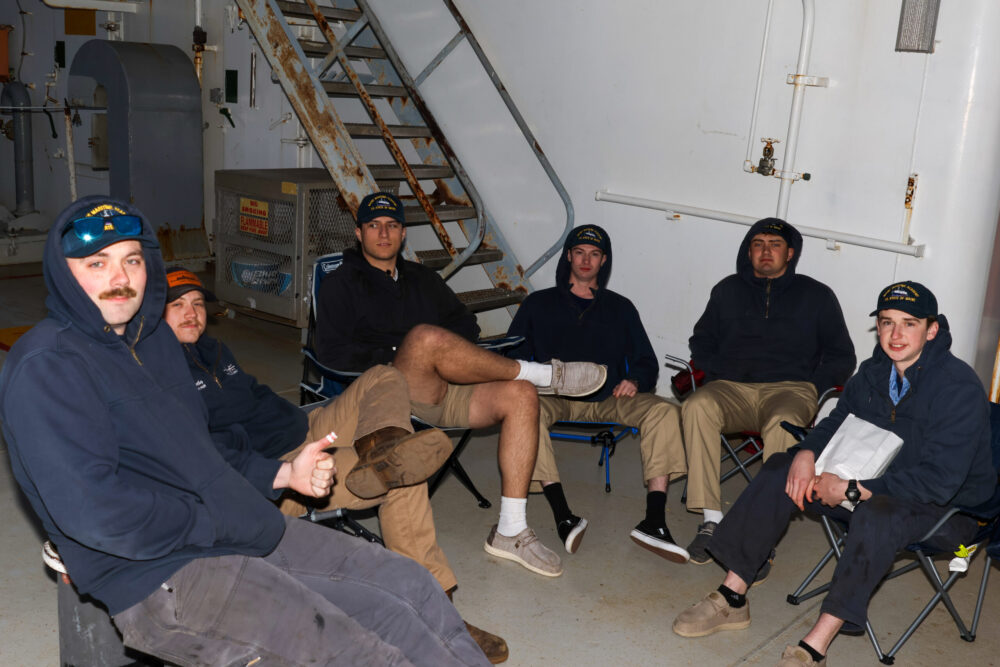 Due to the mishap with Lifeboat #4, we will remain at anchor outside Searsport until the problem has been fixed. It is essential to have all four lifeboats working properly for our safety if an emergency shall occur. While it is disheartening to hear that we will stay here and be delayed bunkering in New York, all crew members understand this is part of the shipping industry! Despite the bad news, all midshipmen have had positive attitudes. Alpha is on Utility, cleaning our beloved TSSOM in high spirits; Bravo is in the classroom, learning information pertinent to their future careers and present success; Charlie is in maintenance, ambitiously fixing problems onboard; and Delta is on watch, tending to and observing the current state of our ship!