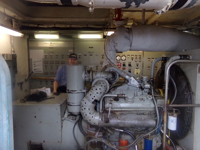 - 2/C Tyler Downing maintains the ship’s electrical lighting system.