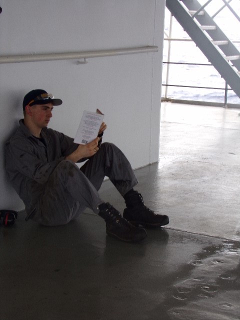 - Cadet Jared Hall relaxes and reads a book on the 03 deck.