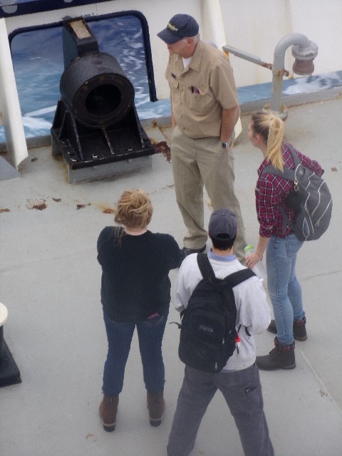 - IBL Halley Todd, Sarah Burgess and Adrian Schidlovsky talking to Captain Leslie Eadie on the ship’s fantail.