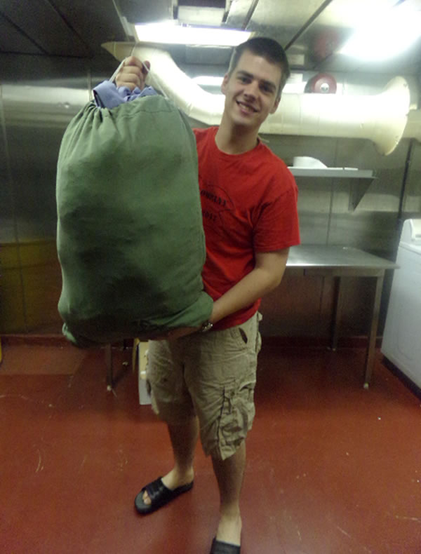 - 2/C Lussier is doing his laundry.