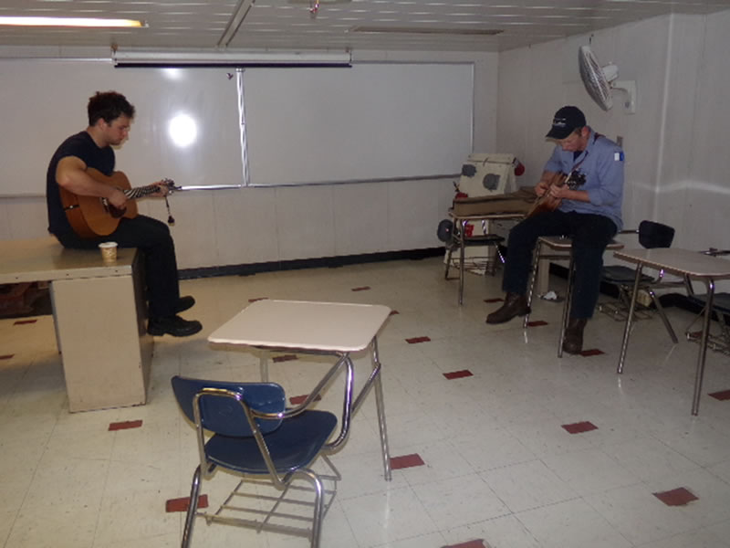- 2/C Manning and Catlin are playing guitar in the 3 deck classroom.